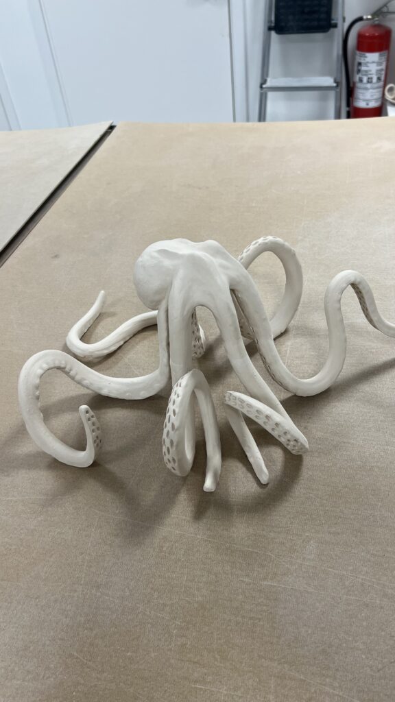 Ja, jag skulpterade en ganska stor bläckfisk i våras. Det fanns många tillfällen där det kunde ha gått fel, men allt höll och idag står den hemma i vardagsrummet!